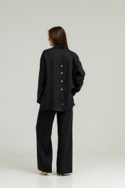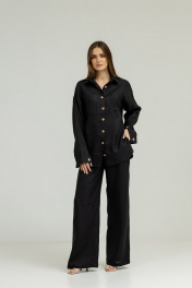 Демисезонный костюм из льна с палаццо и рубашкой Atelero 1053 черный