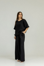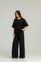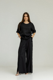 Костюм из льна с блузой кимоно и разрезом Atelero 1098Ч черный