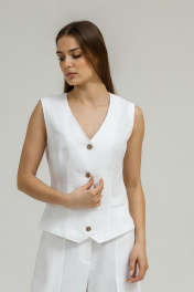 Белый летний комплект из льна с брюками и жилетом Atelero 1102Б белый