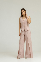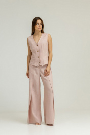 Розовый комплект из льна с брюками-палаццо и жилетом Atelero 1102П пудровый