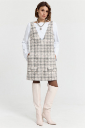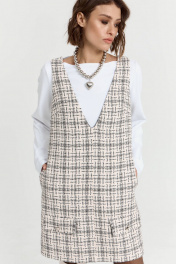 Мини-платье из твидовой ткани с вырезом и карманами ATTIKA A3097-2 бежево-серый_в_клетку