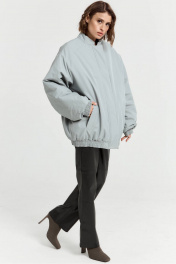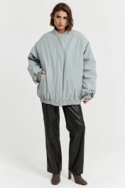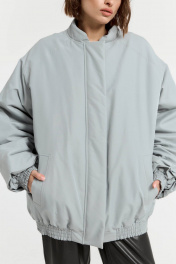 Бомбер в светлом цвете. Выполнен в стиле оверсайз и отлично подойдет для создания актуальных трендовых образов. Бомбер имеет два кармана, воротник-стойку и застежку на кнопках. Рукава бомбера с манжетами на резинке в цвет всего бомбера. Отличный вариант верхнего слоя на раннюю весну.
