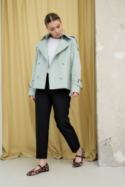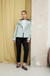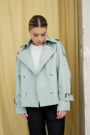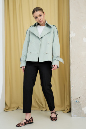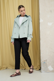 Пальто имеет укороченный прямой крой, который создает эффект элегантности и респектабельности. Пальто сшито из хлопкового материала, который обладает высоким качеством, мягкостью и теплотой. Пальто имеет классический воротник, который придает образу официальность и серьезность. Пальто имеет ряд пуговиц для застежки, которые выполнены в тон ткани. Рукава пальто украшены строчками и пуговицами, которые добавляют деталей и изящества. Пальто подходит для осеннего и зимнего сезона и может быть сочетано с разными стилями и цветами.