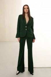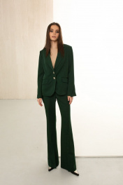 Жакет однобортный изумрудный с волнистой шлицей на рукавах