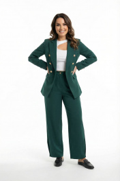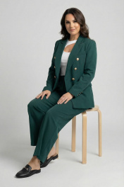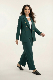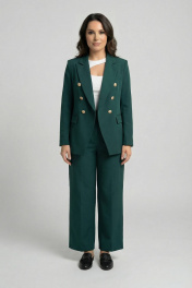Двойка изумрудная (жакет 2-бортный с золотыми пуговицами широкие брюки с защипом внизу на пуговицу