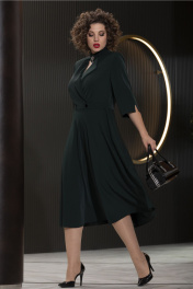 Вечернее платье полуприлегающего силуэта. Ткань костюмно-плательная средней плотности, немного тянется. Брошь съемная. Застежка на молнию в боковом шве. Длина изделия 128 см, рукава 43 см