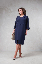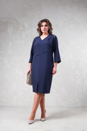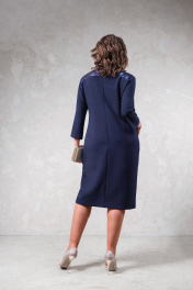 Платье женское, нарядное. Полуприлегающего силуэта. Перед платья с V-образным вырезом, декоративным подрезом по линии талии, декорированный вставкой из пайеток. По спинке декоративная кокетка из пайеток, переходящая на полочку. Разрез спереди по центру. Рукав втачной, расширенный к низу 3/4. Спинка со средним швом. Длина изделия-110 см.