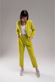 Джинсовый костюм 2-ка желтый средняя плотность с ремнем AVEEVA 5467/5837 лаймовый пунш