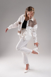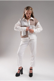 Молочные джинсовые брюки с зауженным низом и карманами AVEEVA 5837 молочный