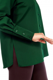 Рубашка свободного кроя, в стиле оверсайз. Силуэт свободный. На переде слевой стороны карман. По боковым швам разрезы. Рукав рубашечный с разрезом и складками,заканчивается манжетой, которая застегивается на 3 петли и пуговицы.Плечо спущенное. Боковой сделан на 3см на запах,поэтому разрез не расходится.Длина по спинке-79см, длина рукава+манжета-63см, длина плеча-17 длина разреза-26см. Параметры модели: обхват груди-98см, обхват бедер-110см, размер изделия на модели 50.