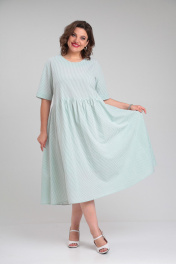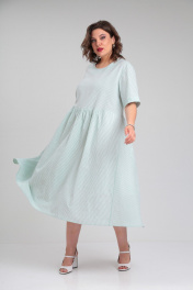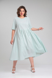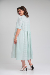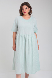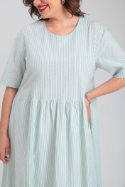Платье А-силуэта из хлопка с подрезами и коротким рукавом Avenue 0129 молочный+пастельно_зеленый