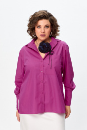 Рубашка оверсайз из хлопка с разрезами и коротким рукавом Avenue 0301-6 розовый