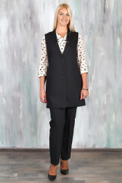 Деловой удлиненный жилет из текстиля с пуговицами Avila 0652 черный