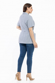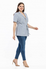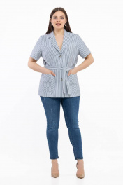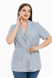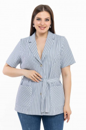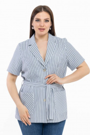 Легкий голубой в полоску жакет с коротким рукавом и поясом Avila 0783 голубой