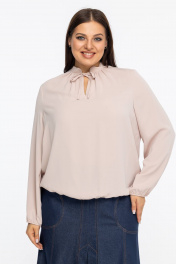 Нежная блузка приятная тактильно к телу. Модель с длинным рукавом, горловина оформлена в виде стойки с завязкой. Блузка универсальная, хорошо смотрится с брюками и юбками