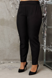 Костюм женский, состоящий из джемпера и брюк. Джемпер со спущенной проймой и 3/4 рукавом, вырез горловины полукруглый, длина джемпера до бёдер. Отделка-бант. Брюки 7/8 длины, зауженые со стрелками, без корманов, на поясе- кокетке, спереди и сзади с эластичной тесьмой.