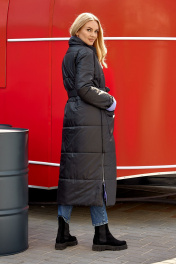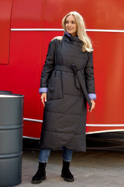 Пальто женское из плащевой ткани со съемным поясом, на утеплителе нового поколения "изософт". Пальто прямого покроя, двубортное, удлиненное, с закругленным снизу краем борта, воротник-стойка, с втачным рукавом на спущенной пройме, с накладным карманом. Изделие застегивается на кнопки, по низу в боковых швах молнии, пальто на подкладке. Рекомендуется носить при температуре -10 и до -20 градусов. Ширина по линии груди (44):59см (46):61см (48):63см (50):65см (52):67см (54):69см Ширина по линии бедер (44):61см (46):63см (48):65см (50):67см (52):69см (54):71см Длина изделия 123см Длина рукава 60см