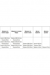Комплект женский, состоит из жилета, блузки и брюк. Жилет прямого силуэта с v-образным вырезом горловины, без застежки, по переду накладные карманы, спинка значительно короче переда, разрезики по боковым швам. Блузка классическая, с рубашечным воротником на стойке, с втачным рубашечным рукавом с манжетой по низу, застежка спереди на планку с пуговицами, по боковым швам закругленные разрезы. Брюки прямые широкие, на поясе-кокетке, с застежкой спереди на молнию и пуговицы, с боковыми карманами со скосом по передним половинкам брюк. Ширина по линии груди жилет (48):53см блузка:59см жилет (50):55см блузка:61см жилет (52):57см блузка:63см Ширина по линии бедер брюки (48):53,5см блузка:61см брюки (50):55,5см блузка:63см брюки (52):57,5см блузка:65см Ширина по линии талии брюки (48):41см брюки (50):43см брюки (52):45см Длина изделия жилет-46,5см блузка-70см брюки-113см Длина рукава блузка-57см