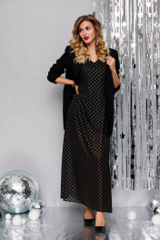 Черный нарядный жакет и платье с шлейфом из текстиля Azzara 972