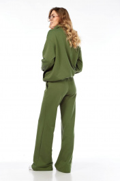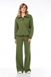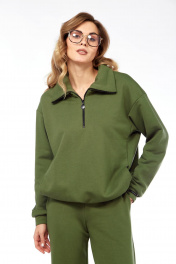 Комплект женский брючный спортивный,состоящий из джемпера и брюк. Джемпер свободгого покроя со спущенной проймой и рукавом на манжете, с застёжкой спереди на молнию, с воротником, с карманами по переду изделия. На манжете по низу изделия. Брюки прямые, расширенные к низу, на поясе с эластичной тесьмой, с карманами в боковых швах.