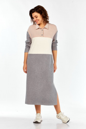 Платье БагираАнТа 1075 серый-пудра-молоко
