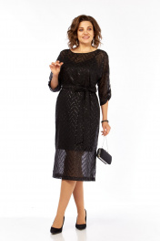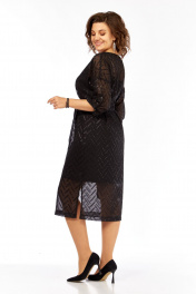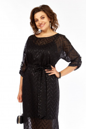 Платье женское прямого силуэта выполнено из шифоновой ткани с очень красивым дизайном. Форма горловины лодочка. Рукава рубашечного кроя, пройма спущенная. По низу рукавов настрочены паты с двумя пуговицами-хрусталиками, которые слегка собирают их. По переду выполнены нагрудные вытачки. В боковых швах снизу обработаны разрезы. В комплекте идёт нижнее платье прилегающего силуэта на брителях, выполненное из трикотажного полотна. По переду обработаны нагрудные вытачки. Дл. верхнего платья-110. Дл.плеча- 24. Дл. рукава -21. Дл. нижнего платья-90.