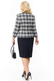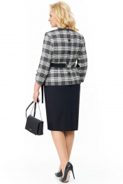 Комплект женский двухпредметный состоит из блузы и юбки, выполнен из двух видов ткани. Блуза полуприлегающего силуэта, выполнена из плательно-костюмной ткани в клетку.Перед с нагрудными вытачками.Спинка с талиевыми вытачками и центральной застёжкой в верхней части на 2 петли и пуговицы и 3 декоративными пуговицами,в низу выполнена шлица.Рукава втачные одношовные,длиной 3/4,низ фигурный с декоративными пуговицами.По низу боковых швов разрезы . Юбка зауженная к низу, выполнена из однотонной плательно-костюмной ткани,на притачном поясе с резинкой между вытачек и застёжкой на тесьму-молнию и петлю -пуговицу сзади.Спинка со средним швом и шлицей .Юбка на подкладке. Комплект дополнен поясом.