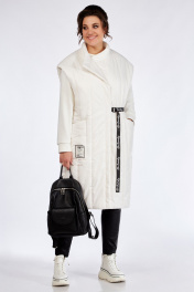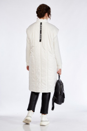 Жилет женский прямого силуэта выполнен из плащевой ткани,простеганной тонким синтепоном.Застежка центральная на три кнопки.Перед с накладными карманами,на правом нашивка.Слева в боковом шве пояс -тесьма . Спинка цельнокроеная с декоративной тесьмой по центру.Пройма спущена. Воротник -стойка.Жилет на подкладке.