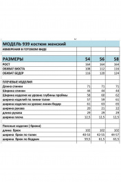 Костюм женский двухпредметный состоит из жакета и брюк,выполнен из плательно-костюмной ткани.Жакет прямого силуэта с кулисой в области талии и центральной застёжкой на 5 петель и пуговиц.Перед с отрезной кокеткой со складкой и нашивкой , рельефами ,заканчивающимися разрезами,и нагрудными вытачками. V-образный вырез горловины с отложным воротником.Спинка цельная с плечевыми вытачками.Рукава втачные одношовные с притачными отложными манжетами. Брюки прямые ,с карманами с отрезным бочком ,на притачном поясе с резинкой по кругу и декоративным шнуром по переду.