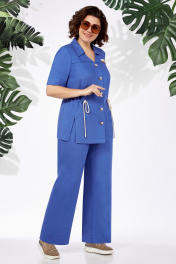 Синий костюм пиджак и брюки из леновой ткани БагираАнТа 939 василек