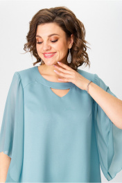 Платье женское А-силуэта – идеальный вариант для особых случаев и повседневных мероприятий. Расклешенный силуэт подчеркнет достоинства и скроет недостатки фигуры. Вырез горловины круглый. Имеется фигурная кокетка с декоративным элементом. Спинка платья со средним швом и застежкой на навесную петлю и пуговицу. Легкость платью придает расклешенный рукав фигурной формы из шифона.