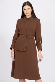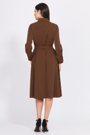 Миди платье из текстиля с поясом и рукавами Bazalini 4933 коричневый