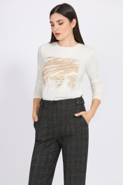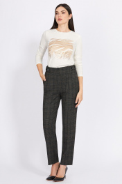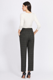 Элегантные брюки со стрелками- вытягивают фигуру. Модель на частично притачном поясе,собранном на эластичную тесьму по спинке, выполнена из приятной ткани с добавлением вискозы и ненавязчивым клетчатым рисунком. Акцентом в брюках являются отделочные пояски с отделочными пуговицам. Спереди застёжка на молнию и петлю-пуговицу и функциональные косые карманы. Сзади - два кармана с листочками.