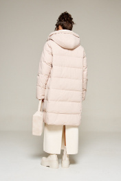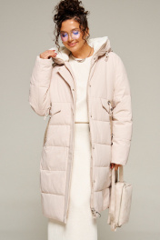 Зимнее, стеганое полупальто прямого силуэта для ценителей стиля и практичности. Это отличное сочетание современных материалов и точного кроя. Лёгкое, удобное и классическое пальто подходит для холодных дней, обеспечивая тепло и комфорт в холодную погоду. Идеально сочетает в себе сдержанность и расслабленность, универсальность и гармоничность. Пальто выполнено из прочной, влагостойкой и приятной на ощупь полиэстерной ткани; на синтетической подкладке. Утеплитель холлофайбер 250 г/м. кв. предназначен для использования изделия при температурном режиме от -10 до -25 градусов. Модель прямого силуэта, базового кроя; предназначена для повседневной носки. Перед с подрезной кокеткой на уровне талии и симметричными декоративными клапанами от неё, а также с боковыми прорезными карманами с клапанами из экокожи, фиксируемые на кнопку. Спинка цельнокроеная с вертикальными рельефами от проймы. Рукав длинный втачной двухшовный. По низу внутри рукава предусмотрена дополнительная вставка в виде притачной трикотажной манжеты. Капюшон с застежкой спереди умеренного объема. Внутренняя часть капюшона выполнена из искусственного меха, который выполняет декоративную и защитную функции, создавая дополнительное тепло и защиту от ветра и холода. Застежка центральная на двустороннюю молнию от верха до низа под ветрозащитной планкой и кнопки по краю борта. Низ изделия ровный. На уровне талии расположена кулиса с продетым шнуром в цвет изделия и декоративными металлическими фиксаторами. Видимая часть кулисы спереди выполнена из экокожи. Подкладка гладкая с наличием внутреннего кармана слева.