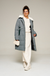 Зимнее, стеганое полупальто прямого силуэта для ценителей стиля и практичности. Это отличное сочетание современных материалов и точного кроя. Лёгкое, удобное и классическое пальто подходит для холодных дней, обеспечивая тепло и комфорт в холодную погоду. Идеально сочетает в себе сдержанность и расслабленность, универсальность и гармоничность. Пальто выполнено из прочной, влагостойкой и приятной на ощупь полиэстерной ткани; на синтетической подкладке. Утеплитель холлофайбер 250 г/м. кв. предназначен для использования изделия при температурном режиме от -10 до -25 градусов. Модель прямого силуэта, базового кроя; предназначена для повседневной носки. Перед с подрезной кокеткой на уровне талии и симметричными декоративными клапанами от неё, а также с боковыми прорезными карманами с клапанами из экокожи, фиксируемые на кнопку. Спинка цельнокроеная с вертикальными рельефами от проймы. Рукав длинный втачной двухшовный. По низу внутри рукава предусмотрена дополнительная вставка в виде притачной трикотажной манжеты. Капюшон с застежкой спереди умеренного объема. Внутренняя часть капюшона выполнена из искусственного меха, который выполняет декоративную и защитную функции, создавая дополнительное тепло и защиту от ветра и холода. Застежка центральная на двустороннюю молнию от верха до низа под ветрозащитной планкой и кнопки по краю борта. Низ изделия ровный. На уровне талии расположена кулиса с продетым шнуром в цвет изделия и декоративными металлическими фиксаторами. Видимая часть кулисы спереди выполнена из экокожи. Подкладка гладкая с наличием внутреннего кармана слева.