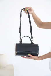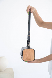 Кожаная сумка через плечо из натуральной кожи и дерева, 22х12х12 см Because KVADRO BLACK