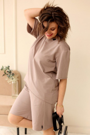Летний комплект футболка и шорты из хлопка BegiModa 3023 коричневый