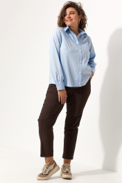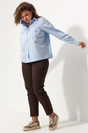 Стильная современная блуза свободного кроя с длинным рукавом- обязательный атрибут женского гардероба, который позволит Вам создавать множество образов. Перед имеет застёжку на петли-пуговицы, контрастного цвета. Воротник втачной, рубашечного типа, низ рукава обработан притачной манжетой. На полочке в районе нагрудной вытачки расположен накладной карман, декорированный пришивным медальоном. Не упустите возможность обновить свой гардероб и привлечь восхищённые взгляды окружающих! Блуза прекрасно сочетается с брюками арт. 6055. Блуза: Длина по спинке: 61 см Длина рукава: 62 см Обхват груди: 110см/48р; 114см/50р; 118см/52р; 122см/54р; 126см/56р; 130см/58р; 134см/60р; 138см/62р.