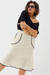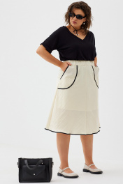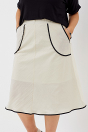 Оригинальная, стильная юбка миди, А-силуэта благородного оттенка шампань станет изюминкой Вашего гардероба. Юбка из хлопкового приятного к телу текстиля с эффектом жатки на вискозной подкладке. Для идеальной посадки крой изделия выполнен по диагональному способу. Пояс не широкий, притачной, без застёжки на эластичной резинке. Накладные карманы и низ изделия обработаны контрастной окантовкой чёрного цвета. Рекомендуем приобрести блузу арт. 4097 для создания гармоничного образа. На фото представлена блуза арт. 4097. Замеры в готовом изделии: Длина с поясом: 85см Обхват бёдер: 106см/48р; 110см/50р; 114см/52р; 118см/54р; 122см/56р; 126см/58р; 130см/60р; 136см/62р. Рост фотомодели 174 см, размер одежды на фото 52.