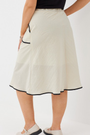Стильная летняя юбка миди с эффектом жатки и накладными карманами BegiModa 5013 шампань