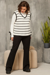 Трикотажный жилет стал своеобразной классикой современного гардероба. Он легко вписывается во множество стилей и образов, уместно смотрится как в повседневных, так и в деловых луках. Жилет с V-образным вырезом горловины, Акцентная деталь модели - нестандартная обработка горловины и проймы изделия, которые выполнены настрочными обтачками контрастного цвета с открытым срезом. Обтачки позволяют в меру «вытрёпываться» краям изделия и предохраняют их от осыпания. В боковых швах разрезы, спинка длиннее полочки. Горловина и низ жилета обработаны трикотажной обтачкой контрастного цвета. Уютный мягкий жилет не только освежит образ, но и позволит Вам разнообразить гардероб создавая множество интересных сочетаний! На фото представлены брюки арт. 6056. Для того, чтобы правильно подобрать свой размер, необходимо ваш замер объёма груди разделить на 2. (например, объём груди 104:2=52 размер). Замеры в готовом изделии: Жилет: Длина по центру спинки: 70 см Обхват груди: 106см/48р; 110см/50р; 114см/52р; 118см/54р; 122см/56р; 126см/58р; 130см/60р; 134см/62р. Рост фотомодели 174 см, размер одежды на фото 52. Допуск расхождения в замерах +-2 см.
