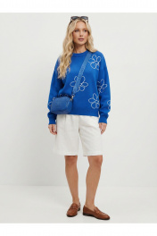 Джемпер вязаный небесного цвета с принтом цветы от BELANGE — неотъемлемый элемент гардероба современной девушки. Выполнен из мягкого хлопка и прочного акрила, что обеспечивает уют в носке. Этот трикотажный тонкий вязаный наряд oversize идеально подходит худым девушкам высокого и низкого роста. Теплая милая она имеет прямой силуэт и длинные рукава. Легкая кофточка не мнётся и не теряет форму, не жарко летом, комфортно весной и осенью, что очень удобно. Он идеально сочетается с любой зимней одеждой становясь основной образа как на вечеринку, так и на каждый день в офис, в университет, встречу с друзьями. Эта красивая популярная модель выполнена в модном дизайнерском варианте.