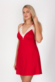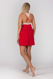 Сорочка на тонких бретелях выполнена из шелковистого вискозного трикотажного полотна, роскошный отрезной лиф с контрастным кружевом. Декоративная спинка с контрастным кружевом и бретелями с регуляторами.