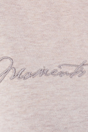 Трикотажный топ без рукавов выполнен из меланжевого хлопкового полотна высшего качества (пр-во Узбекистан), круглый вырез горловины, на груди выполнена вышивка в тон меланжевого полотна "Moments". Идеально подходит в комплект с худи, брюками или шортами.