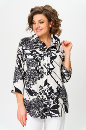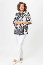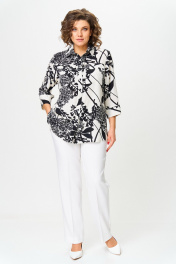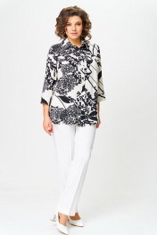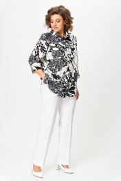 Блуза, брюки БелЭльСтиль 408-3_10_22+596-2_89_22 молочно-черный