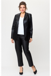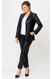 Это не просто две вещи — это готовый идеальный образ. Комплект из удлиненного жакета и классических брюк из эко-кожи создан для тех, кто ценит безупречный крой, актуальные тренды и выразительную лаконичность. Жакет полуприлегающего силуэта с центральной бортовой застежкой на пуговицы до линии перегиба лацкана. Спереди рельефные швы от плечевого шва,отрезной бочок и карман с клапаном. Спинка с рельефами от плечевого шва. Рукав втачной, двухшовный. Воротник пиджачного типа. Жакет полностью на подкладке. Брюки прямые, слегка заужены к низу,заутюжены стрелки,по переду обработаны карманы с отрезным бочком,застежка на тесьму-молнию и 1 пуговицу.На задних половинках обработаны вытачки и имитация карманов с листочкой, пояс в брюках притачной. Длина жакета по спинке 67 см, длина рукава 62 см, длина брюк по боковому 94 см.