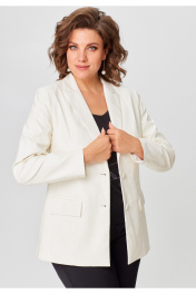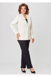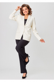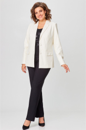 Деловой женский двойка жакет и брюки из текстильной ткани БелЭльСтиль 412-3_03_22+596-2_79_22 молочная экокожа +черный