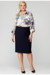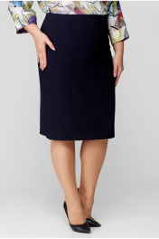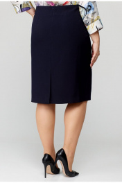 Юбка прямого силуэта, из текстильной ткани, верхний срез юбки обработан обтачкой, заднее полотнище со средним швом, застегивается на потайную молнию. Шов переходит к низу в шлицу. По переднему и заднему полотнищах обработаны таливые вытачки. Длина по боковому шву 66 см. Юбка на подкладке.