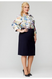 Прямая юбка из хлопка на подкладке с шлицей БелЭльСтиль 557-2_58_22 синий однотон