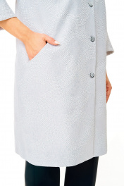 Женский удлиненный жакет-кардиган, на подкладке, прямого силуэта. Горловина округлой формы, от горловины идут рельефы, закругленные к боковому шву, в которых обработаны карманы. Спинка цельная. Рукав втачной, двухшовный, 3/4. Длина рукава 49 см, длина по спинке 89 см.